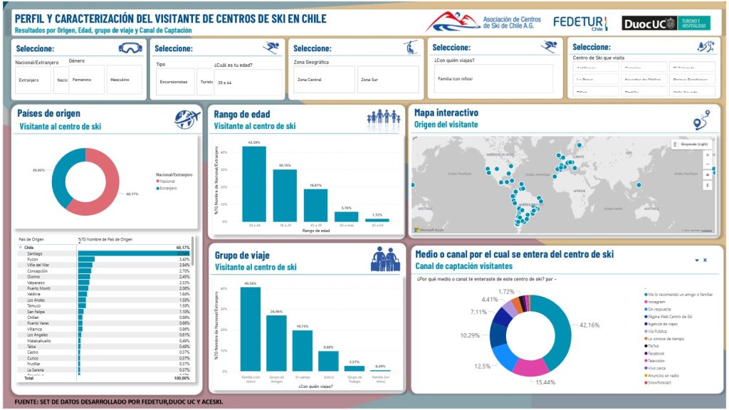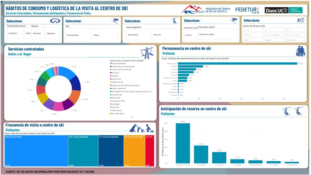 El miércoles 12 de noviembre de 2025, se realizó en las oficinas de FEDETUR una reunión clave para el futuro del conocimiento del cliente en la industria de la nieve. Participaron representantes de la Escuela de Turismo Duoc UC, ACESKI y FEDETUR, con el objetivo de presentar los resultados del estudio de clientela realizado por Duoc UC en distintos centros de ski de Chile, así como analizar sus posibles usos, mejoras y proyección en el tiempo.